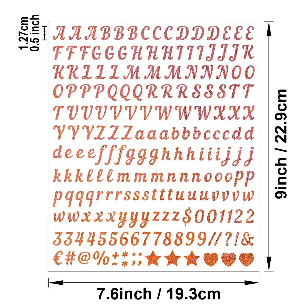 Бұл әріпті сәндік жапсырма - бұл DIY, күнделікті безендіру және таңбалау сценарийлері үшін арнайы жасалған шығармашылық сәндік элемент. Толық жиынтықта әртүрлі емле, нөмірлеу және безендіру қажеттіліктерін қанағаттандыратын 26 бас ағылшын әріптері, 0-9 сандары және жалпы таңбалар бар. Ол қалың және жоғары сапалы жапсырма материалдан жасалған, мықтап жабылған құм қабаты бар, оңай жыртылады және мықтап жабысады. Ол әртүрлі тегіс және тегіс беттерге жарамды және жойылған кезде қалдық қалдырмайды.