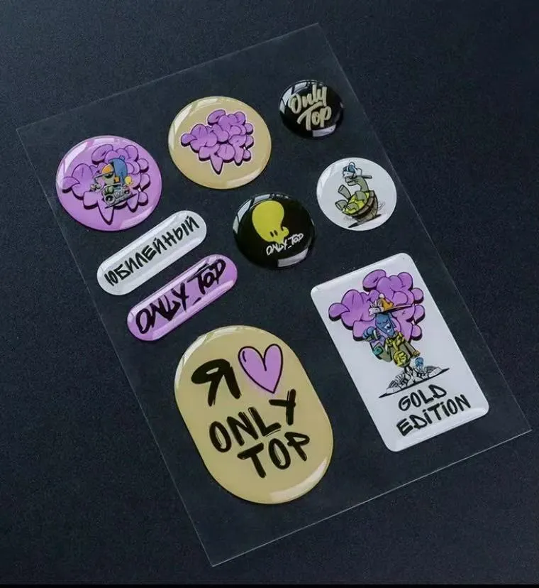 Жеке эпоксидті жапсырмалар - Jojo бумасының негізгі өнімдерінің бірі. Jojo шығарған арнайы эпоксидтік стикерлер жоғары сапалы эпоксидті материалды дәл басып шығару технологиясымен үйлестіреді. Оларды үлгілермен, мәтінмен, пішіндермен және т.б., клиенттердің қажеттіліктеріне сәйкес реттеуге болады. Керемет мультфильмдер, логотиптер, олар дәл ұсынылуы мүмкін.