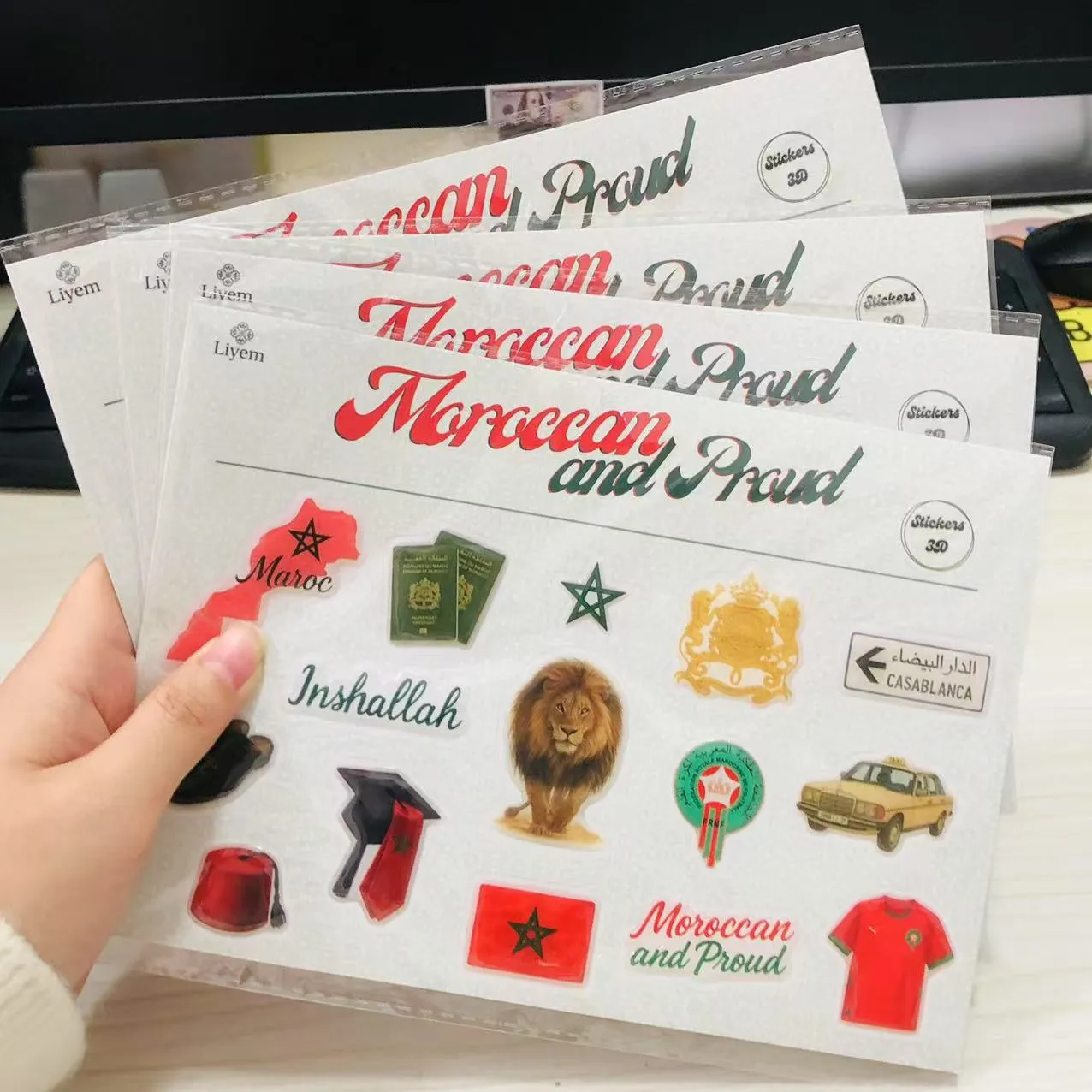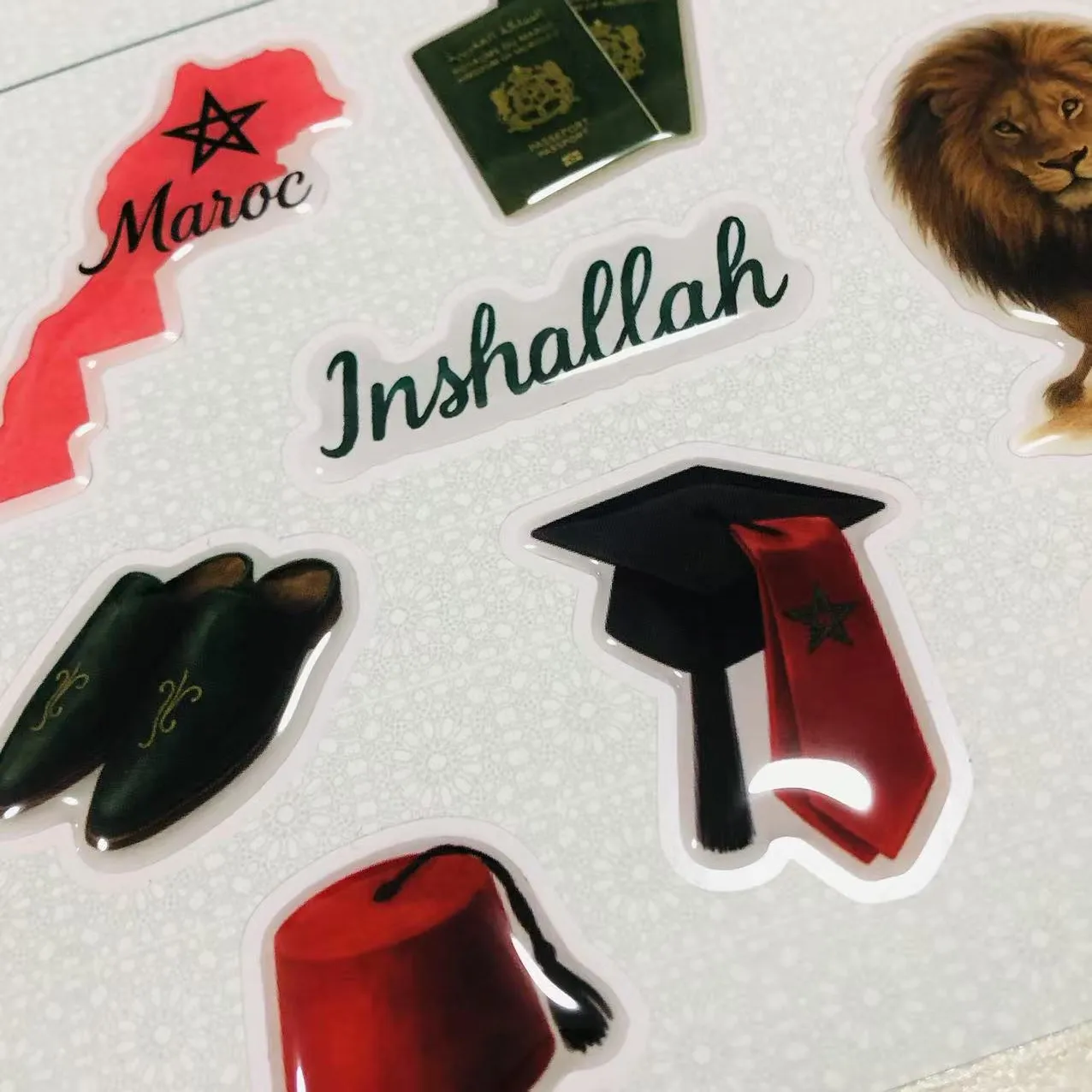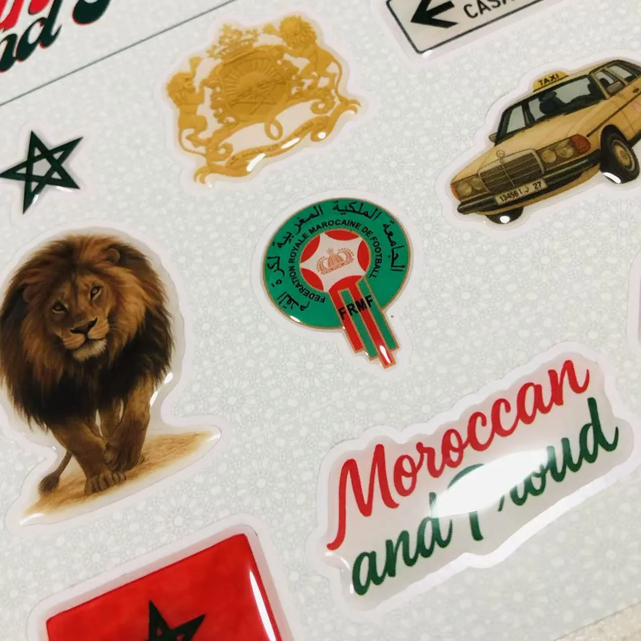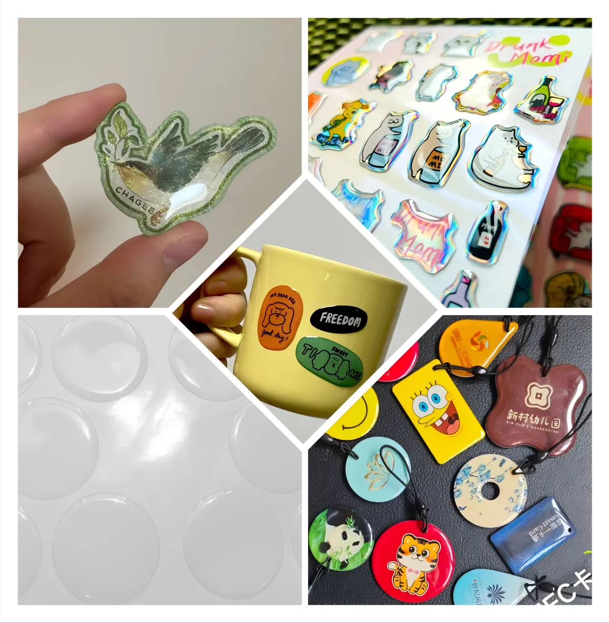 A1: Біз жоғары сапалы шикізатты қолданамыз: берік жабысқақ субстраттар (винил, ПЭТ немесе қағаз), айқындығы жоғары басып шығаруға арналған экологиялық таза сия және өнеркәсіптік эпоксидті шайыр. Шайыр 3D күмбезді жапсырмалардың күшті сызатқа төзімділігін және ұзақ жылтырлығын қамтамасыз етеді.