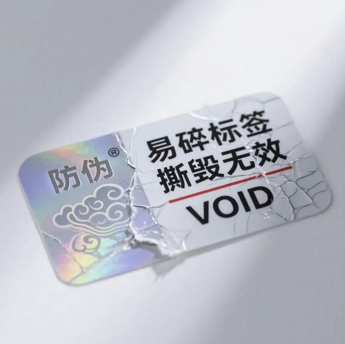 1. Жоғары нәзіктік: негізгі материалдың өзі өте жоғары брезенттілікке ие. Бір кездері жыртылған күшке ұшырағаннан кейін, ол бірден кішкентай кесектерге бөлінеді, толығымен қабығы аршып немесе қайта жабыса алмайды. Бұл анти-контрафактілік жапсырманың қайта пайдаланылу мүмкіндігін бұғаттайды.