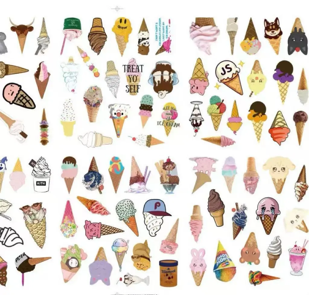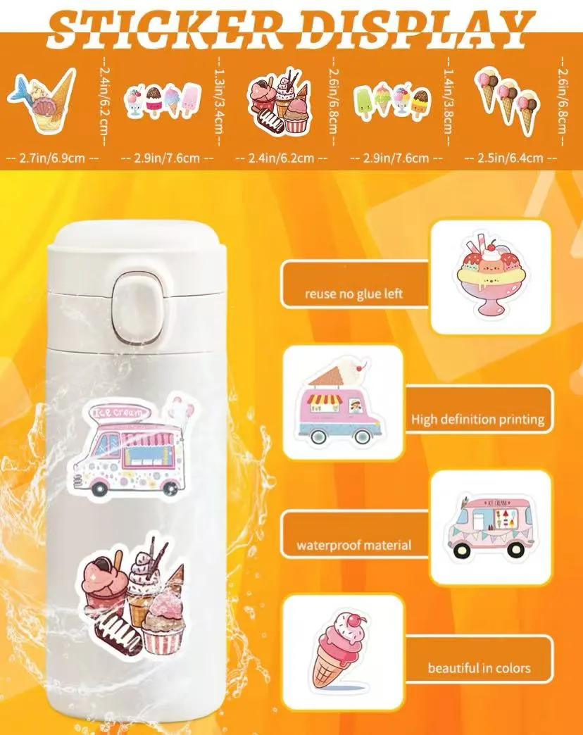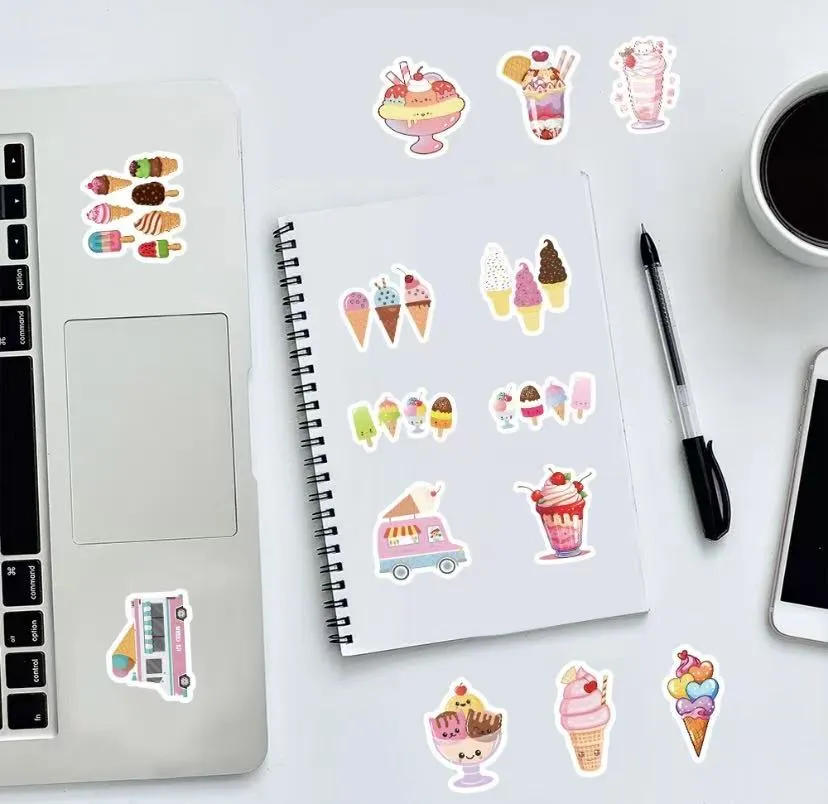 Бұл балмұздақ жапсырмаларын Jojo Pack шығарған. Онда балмұздақ элементтері және әр стикерлер салқын және тәтті хош иіске ие, олар сіздің заттарыңызды жазықтыққа бірден жұқтырады.