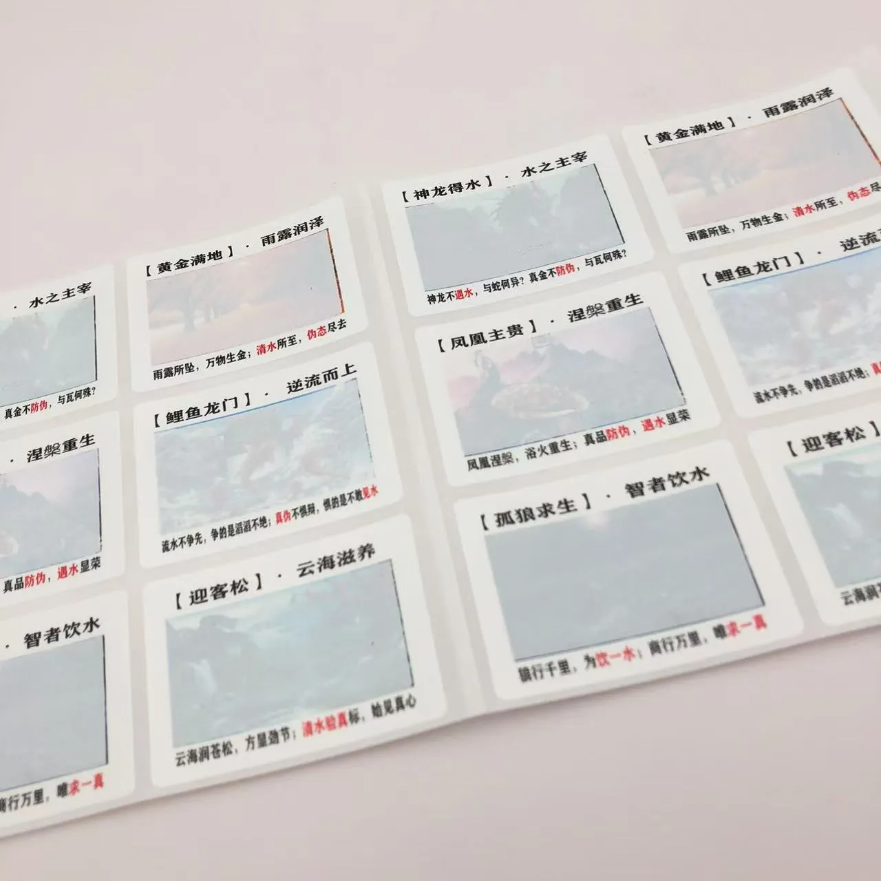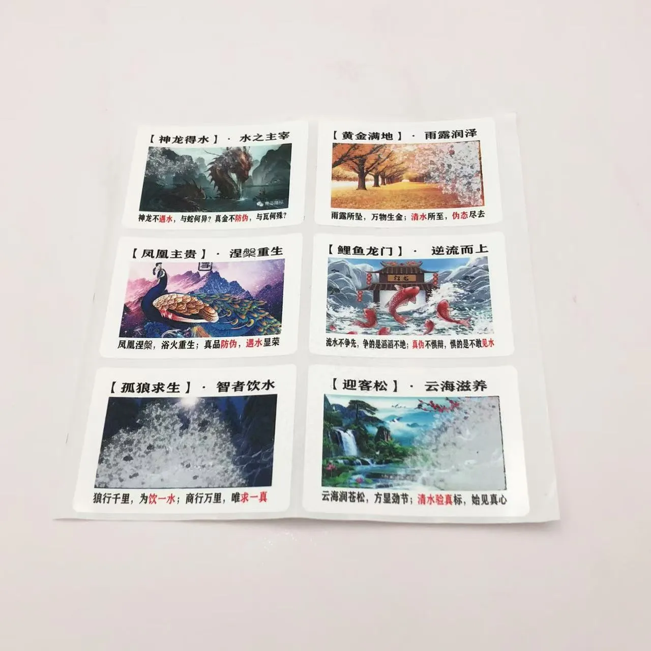 A суға сезімтал жапсырмаларарнайы су негізіндегі сия құрылымымен басылған интеллектуалды материал. Суға немесе басқа мөлдір сұйықтықтарға әсер еткенде, олар ылғалды тез сіңіріп, жапсырманың шамамен 1 секунд ішінде мөлдір болып, жасырын үлгілерді немесе мәтінді ашады. Сұйықтық буланғаннан кейін карталардың кейбір түрлері қайталап пайдалану үшін бастапқы күйіне оралуы мүмкін.