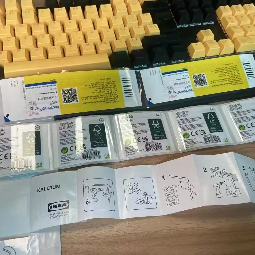 Бүктелген жапсырмалар, олардың қамту аймағының басып шығару кеңістігін бірнеше рет, мысалы, бөтелке денелері, пробиркалар, тестілеу түтіктері және шағын электрондық құрылғылар сияқты. Бүктелген жапсырмалар туралы ақпарат: сыртқы қабаты, мысалы, өнім атауы және логотипі, мысалы, ингредиенттер тізімі, пайдалану нұсқаулары, штрих-код, жалпы аударма және т.б.