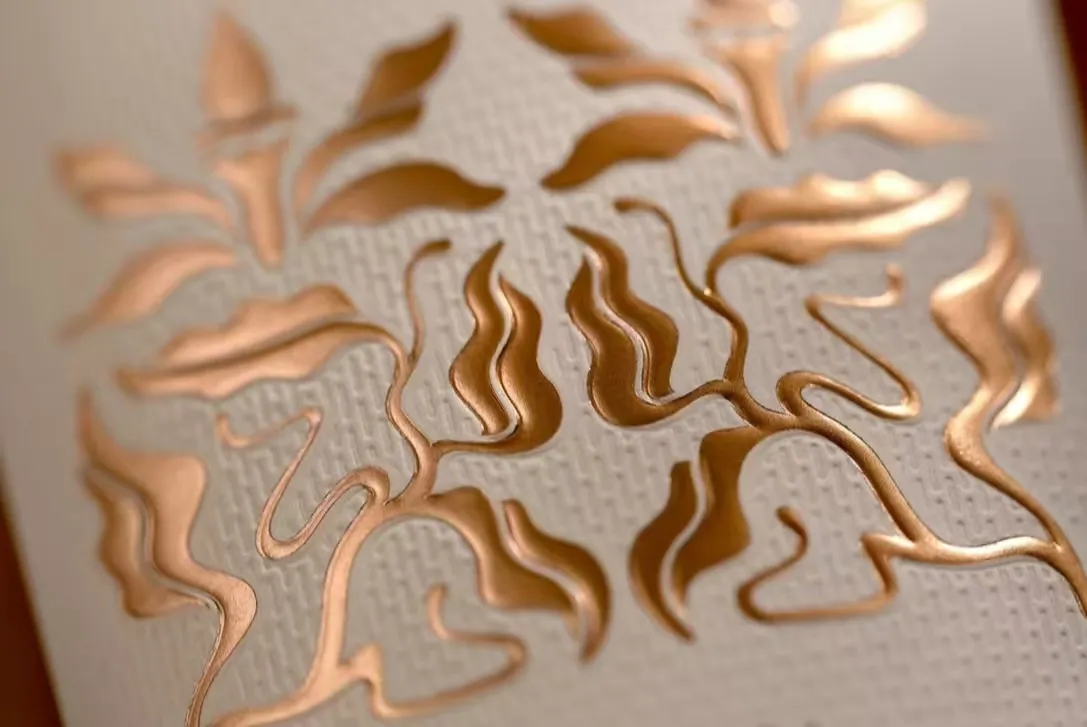 Жалпы алғанда, қапталған қағазға және жоғары жылтыр материалдарға ыстық штамптаудың тегістігі мен жылтырлығы арнайы текстуралы қағазға қарағанда жақсырақ. Сонымен қатар, егер ыстық штамптау арнайы текстуралы қағазда жасалатын болса, жылдамдық пен қысымды сәйкесінше реттеу керек. Сонымен қатар, алюминий фольга материалдарында түстерді басып шығару ыстық штамптауға ұқсас металдық сезім тудыруы мүмкін, бұл бірдей әсер етеді. Бедерлеу процесін қосу жапсырманы металл бедер әсерін көрсетеді.