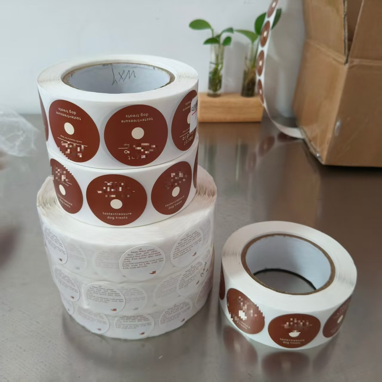Jojo PackДания клиентіне арналған иттердің тағамдық жапсырмаларын өндіру, тексеру және қаптастыруды аяқтады, ал жапсырмалар қазір жеткізуге дайын.