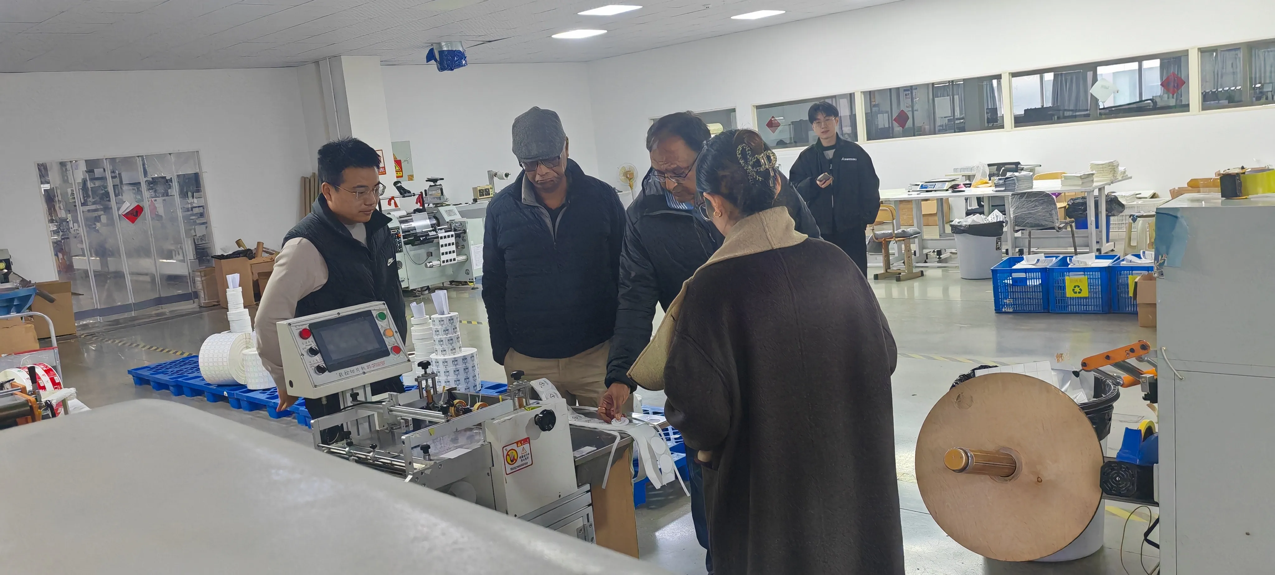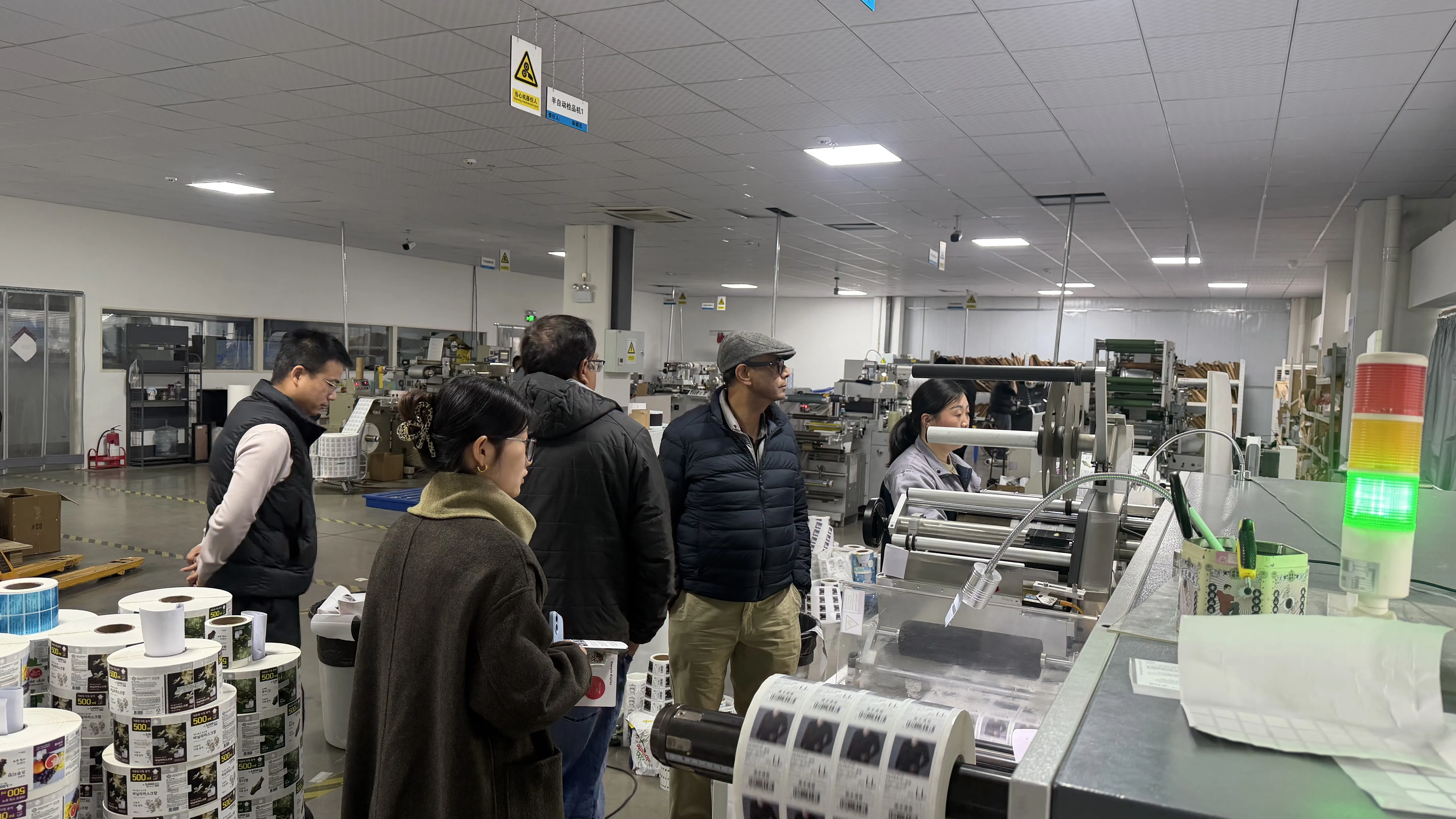 Өндірістік шеберханада тұтынушылар автоматты басып шығару өндірісінің тиімді жұмысын жақыннан бақылап, біздің компания қабылдаған экологиялық таза сияны, жоғары дәлдіктегі кесу технологиясын және тазартылған өндірісті бақылауды жоғары бағалады және біздің компаниямыз стандартталған өндірістік процестерге және жапсырма өнімдерін орау үшін олардың жоғары сапа талаптарына толық жауап бере алатын күшті техникалық күшке ие екеніне сенді.