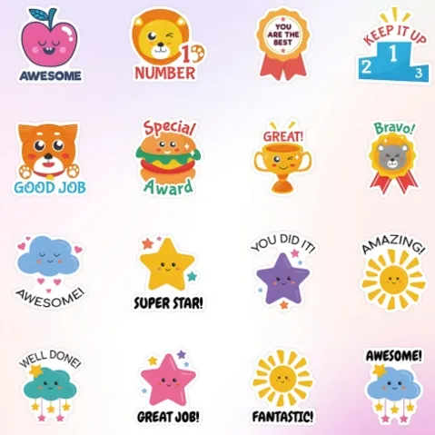 Сыйақының жапсырмалары - бұл барлық балалар балалық шағында болатын нәрсе! Бұл жапсырмаларды бағаламаңыз! Алайда, олардың нысандарына қарамастан, олар балалар балалық шақ кезінде өте маңызды рөл атқарады! Біз балаларға арналған жапсырмаларда немесе балалар есту қабілеттерін ұнататын кейбір үлгілерді немесе балалар есту қабілеттерін, мысалы: «Жақсы!», «Үлкен жұмыс!», «Өте жақсы!», «Ақылды!». Бұл тек балаларға деген сенімділікке ғана емес, сонымен қатар оларды жақсы әдеттерге сай болуға шақырады.