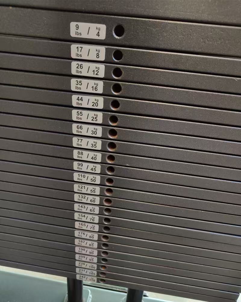 Әрбір стикер салмақ мәндерімен анық белгіленген, бұл пайдаланушыларға жаттығу қарқындылығына сәйкес салмақ блоктарын жылдам анықтауға және таңдауға және жаттығулар кезінде жиі салмақ түсірмеуге мүмкіндік береді.